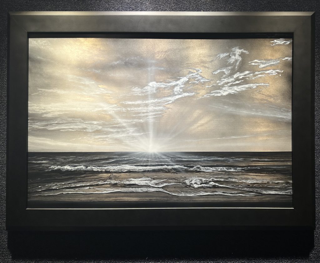 Reflective Metal Paintings are designed to be in light. Sunlight, spots, or multi color, changes the look . They are uv protected and archival hand made originals.